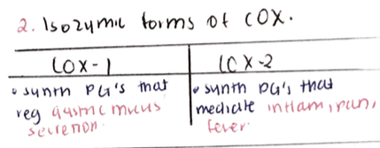 Isozymic forms of COX (Arachidonic acid metabolism)