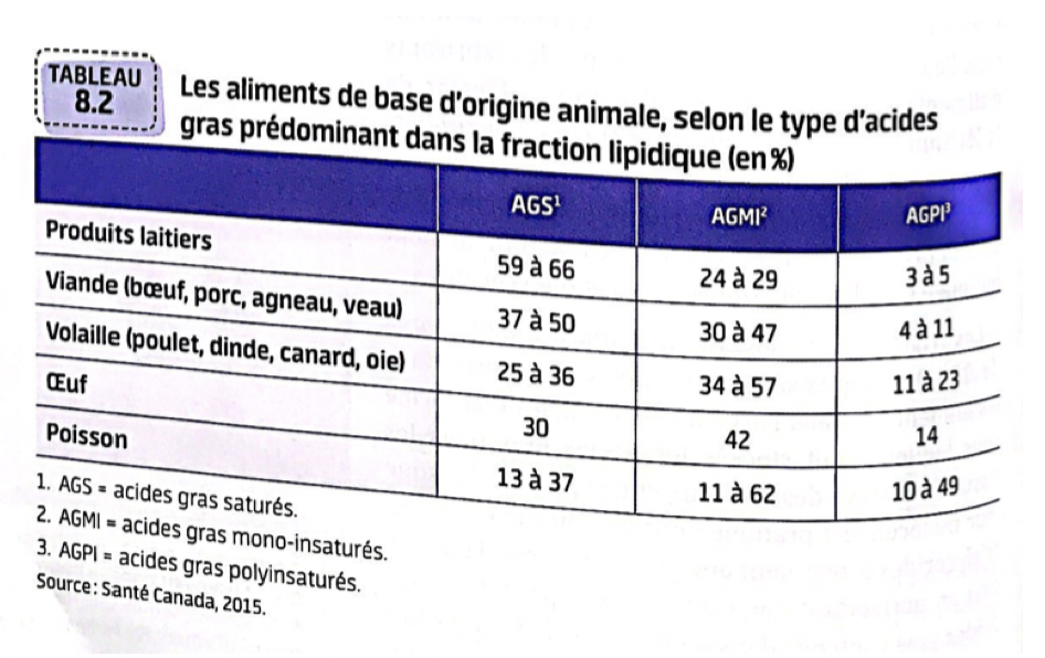 Aliments d’origine animales selon de type d’a.g