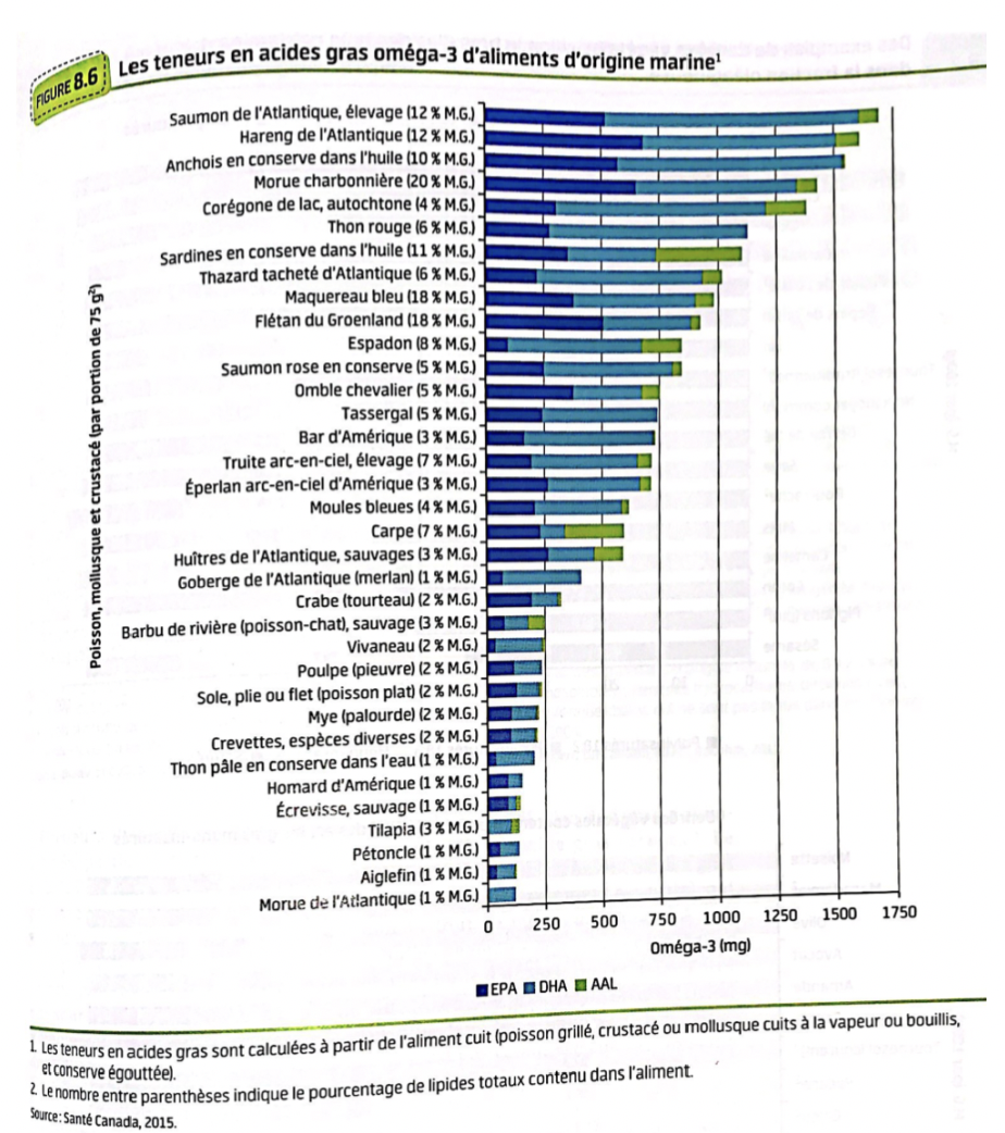 Teneur en a.g Oméga 3 d’aiments d’origine de la mer - Graphique