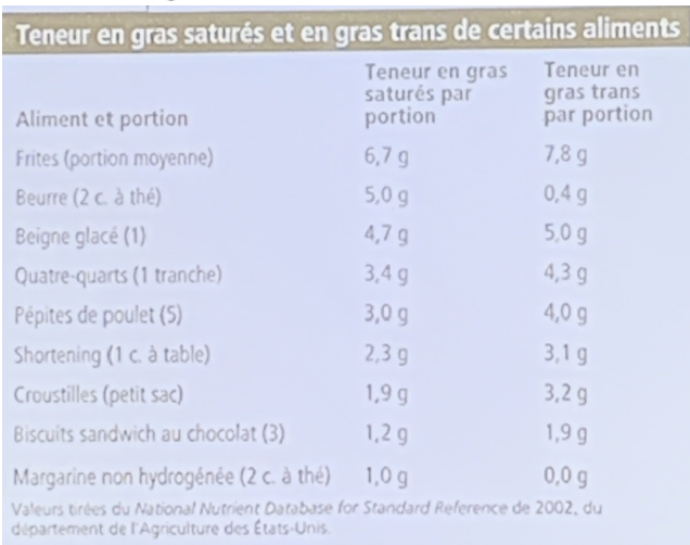 Tableau 1: teneur d’acide gras trans