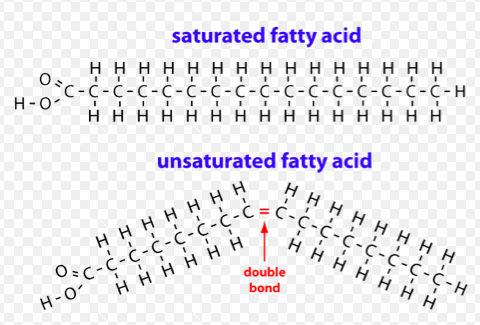 It prevents stacking, so fatty acids have lower melting temperature. More double bonds, the most likely a FA is in liquid state at room temperature.