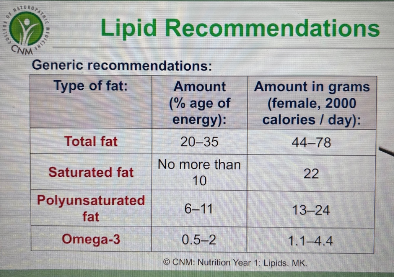 What are the general recommendations for fat consumption?