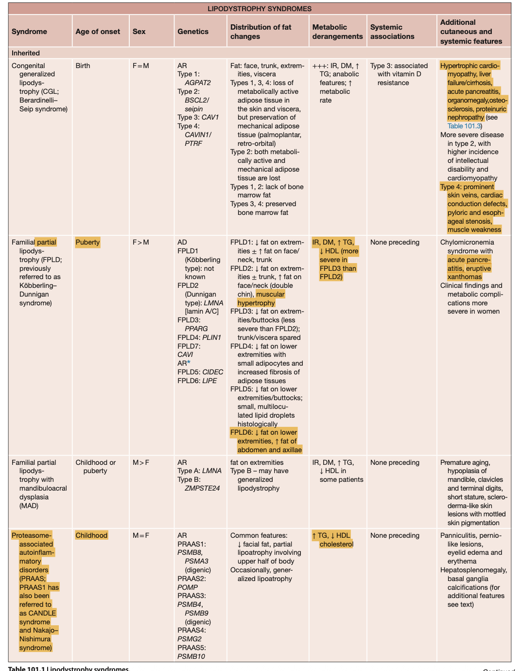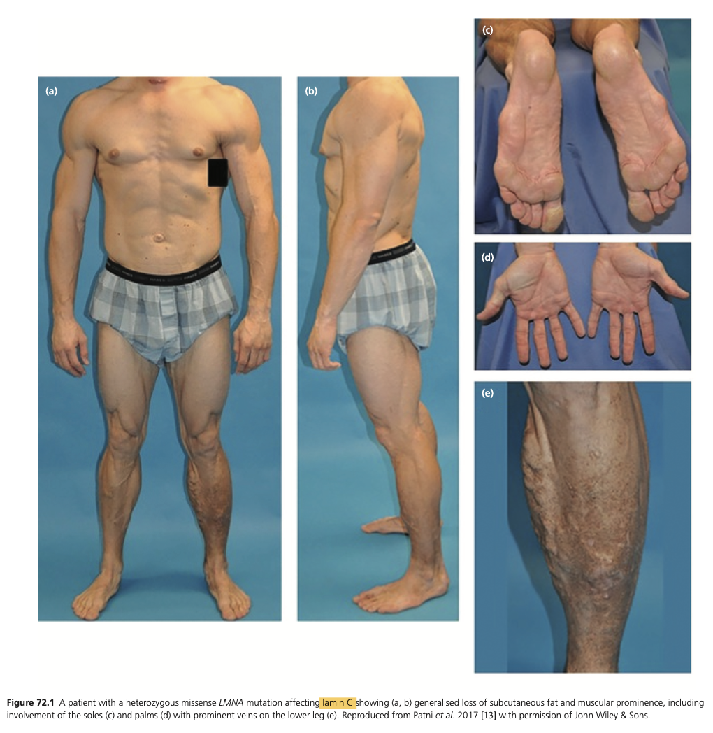 The CGLs (Beradinelli–Seip syndrome) are a group of rare autosomal recessive conditions that first present in neonates. The phenotype is characterised by a virtual absence of subcutaneous and visceral adipose tissue, distinctive muscular appearance and prominent veins. Mechanical adipose tissue of the palms, soles, orbits, scalp and joints is usually spared, but it is deficient in CGL2. This severe lack of metabolically active adipose tissue results in childhood-onset metabolic complications, including hypertriglyceridaemia, hepatic steatosis, palpable hepatosplenomegaly and acanthosis nigricans. Type 2 diabetes develops during adolescence or early adulthood.