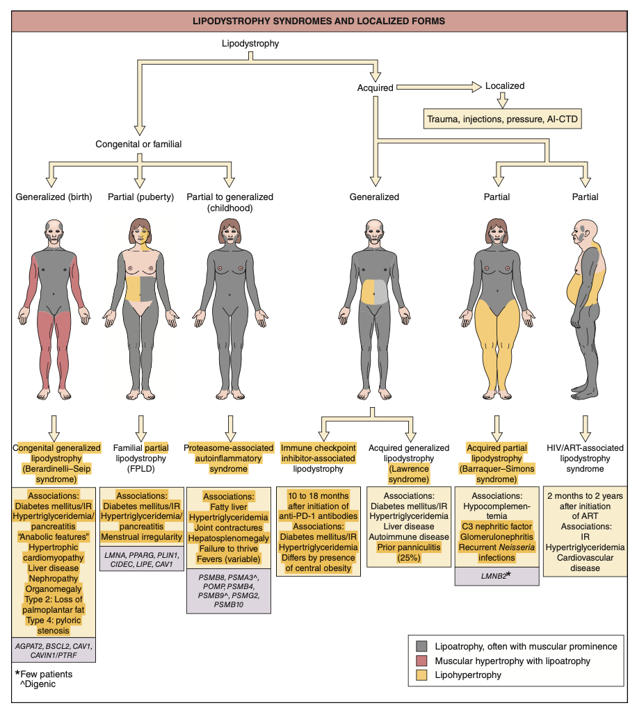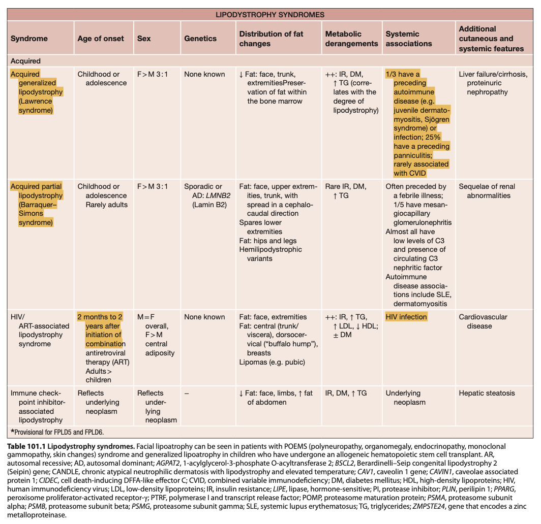 Acquired lipodystrophy refers to a heterogeneous group of disorders in which there is localised, partial or generalised loss of subcutaneous fat (lipoatrophy), in certain cases accompanied by fat accumulationin other body sites.