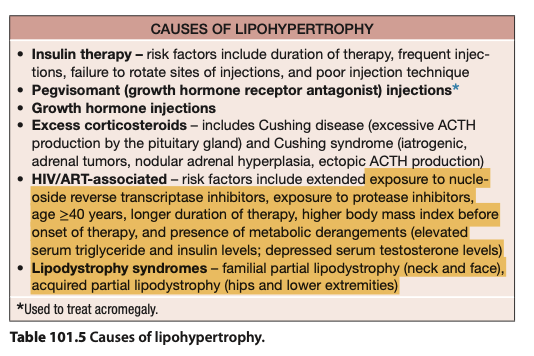 What are the causes of lipohypertrophy?
