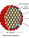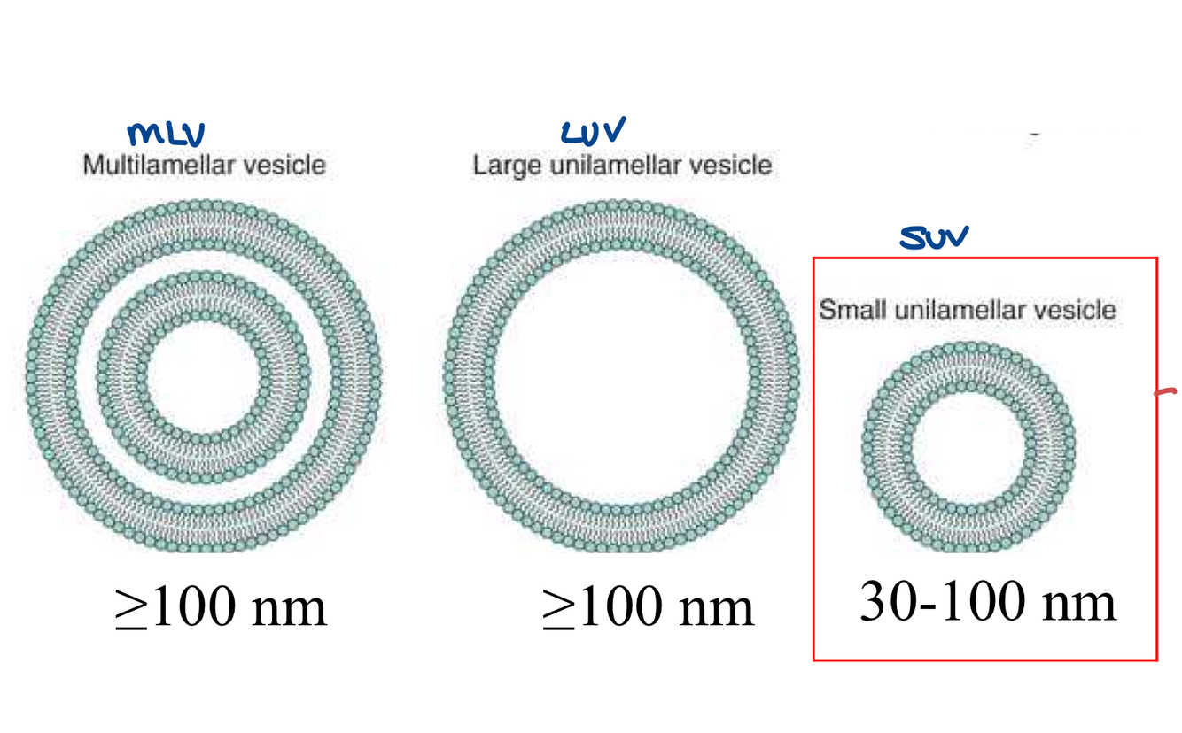 Closed, spherical vesicles of single or multiple lipid bilayers (lamellae), enclosing an internal aqueous core