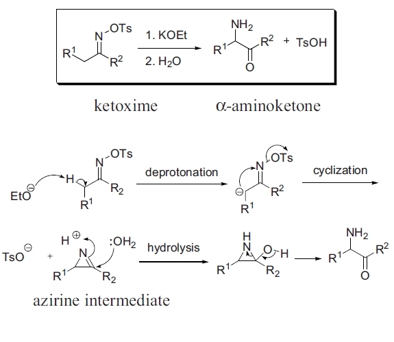 磺酰基酮肟与强碱生成α-氨基酮(实际上是酮经肟转化为α-氨基酮)
