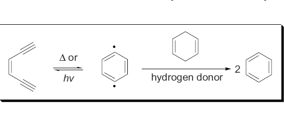 烯二炔电环化成1,4苯二自由基再氢化成苯