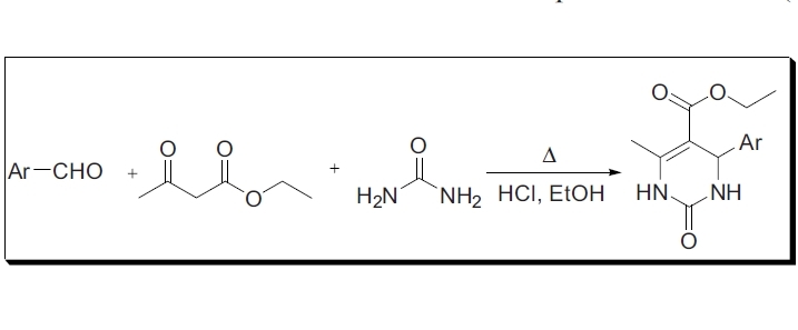 芳醛,尿素,β-二羰基物在酸醇溶液中缩合成嘧啶酮
