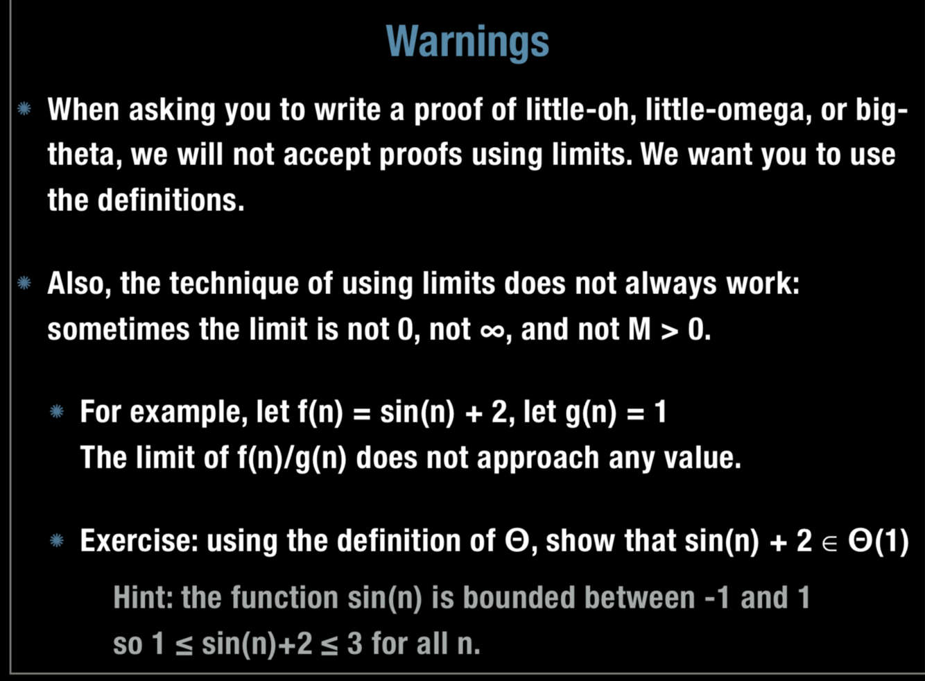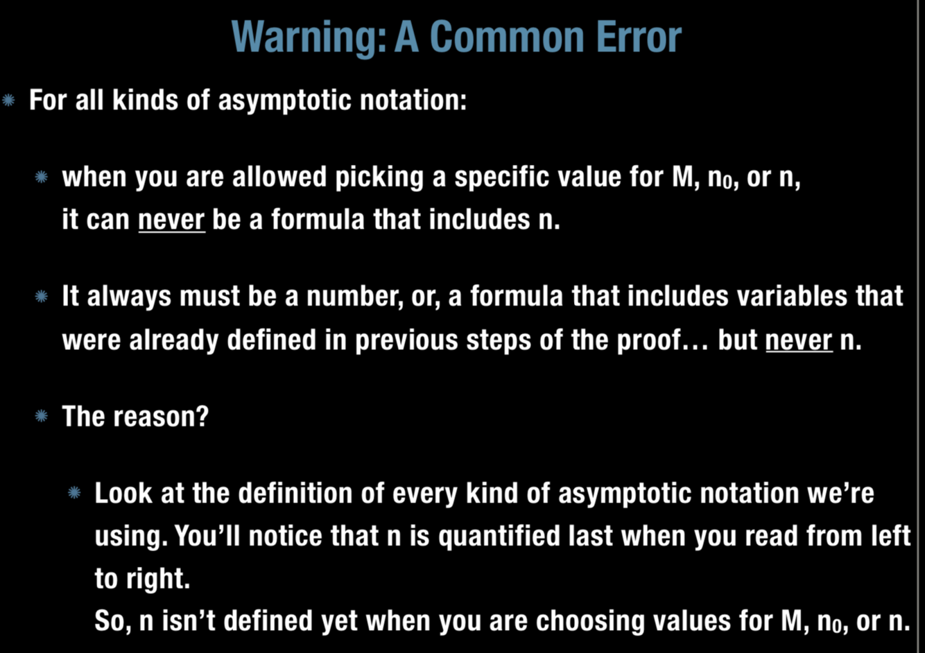 What is the warning for a common error with asumptotic notation?