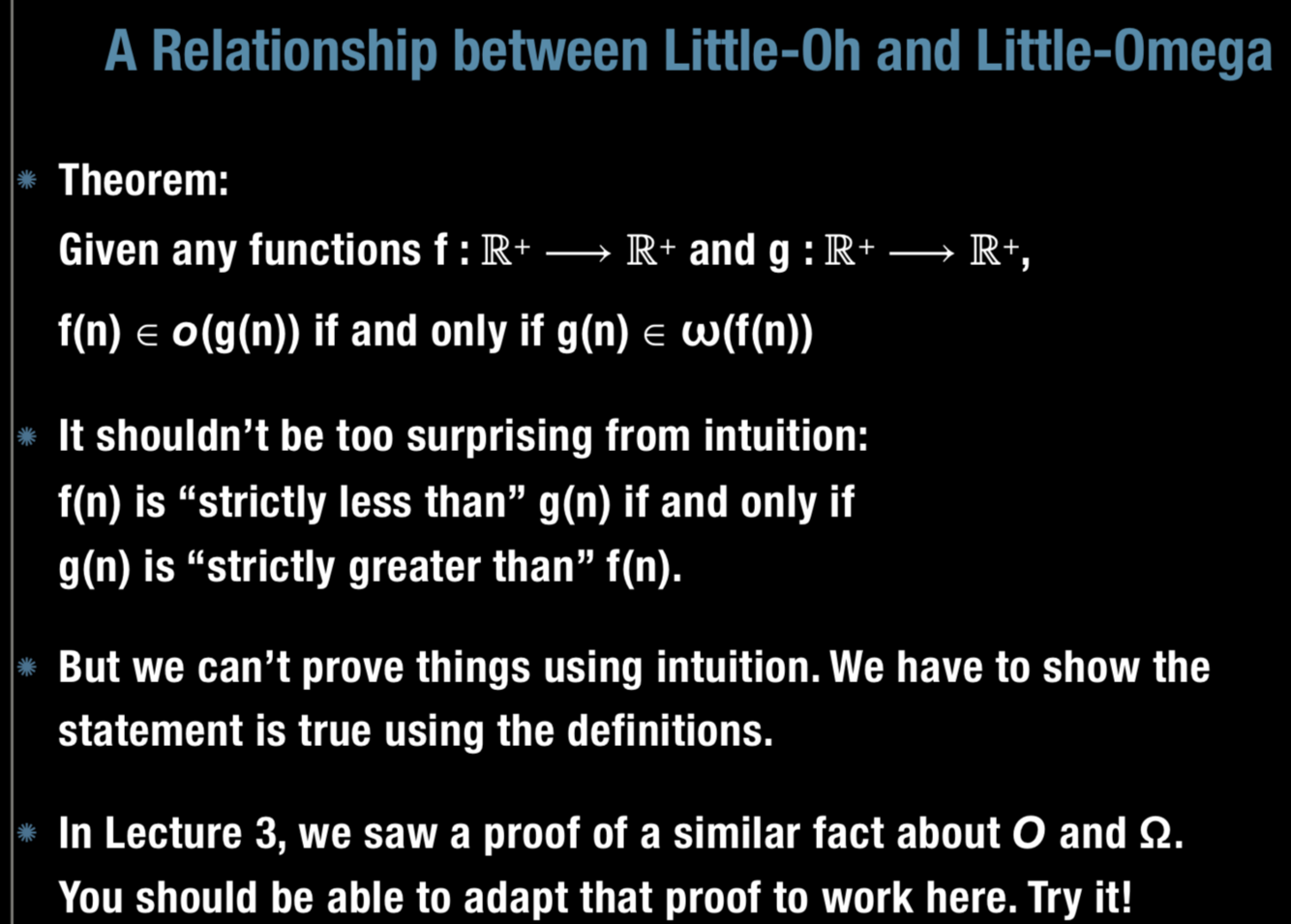 What is the theorem for the relationship between Little-Oh and Little-Omega?
