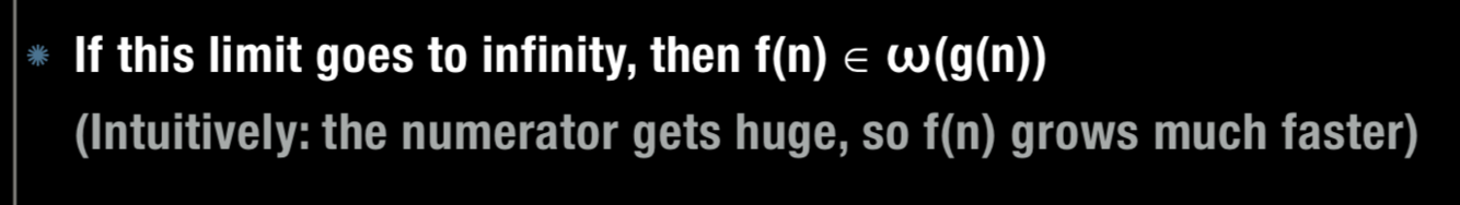 When dividing f(n)/g(n) if this limit goes to infinity, what does this mean?