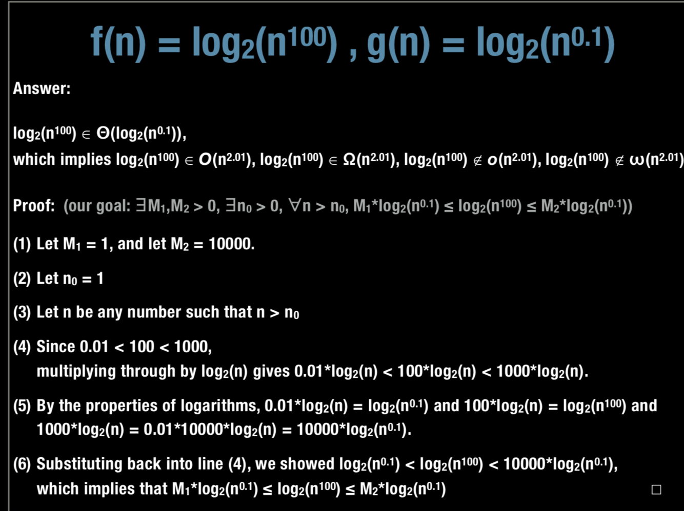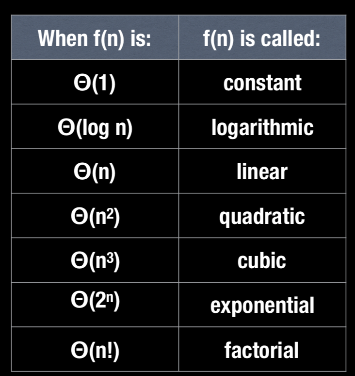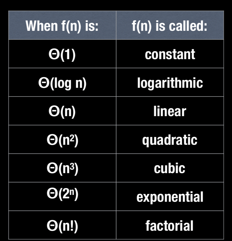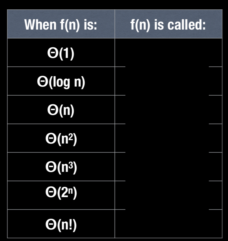 For each of the following, determine what asymptotic notation it is?