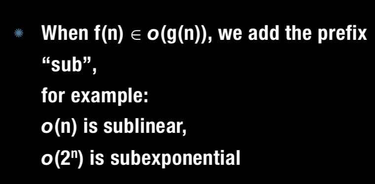 For the following, if f(n) is little oh of g(n) what prefix do we add?