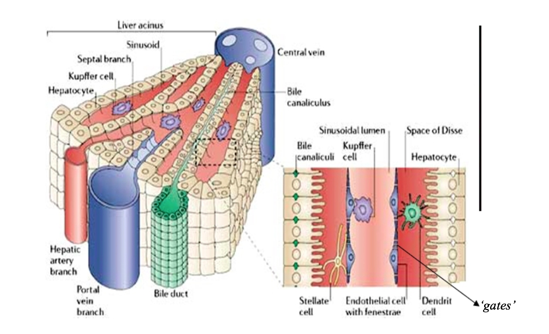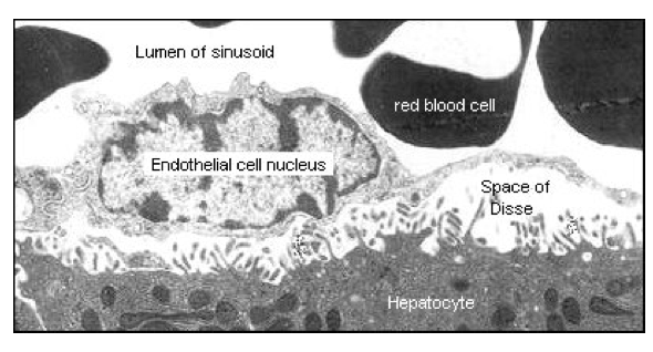 Plasma can thus pass through into the perisinusoidal space of disse, where they can interact with hepatocytes