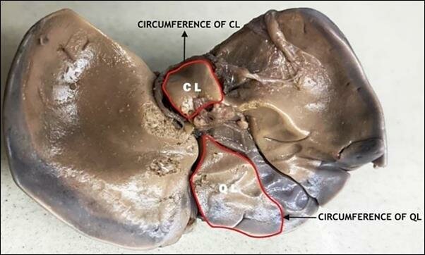 The caudate and quadrate lobes are separated by the porta hepatis which contains the vasculature