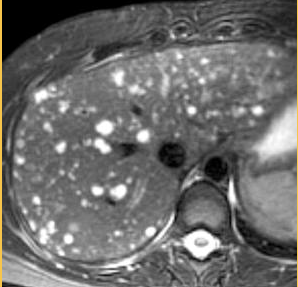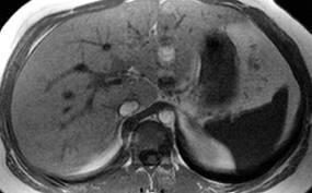 T1W:Normal liver is slightly higher signal intensity when compared to the spleen. Focal liver lesions are normally low signal on T1 weighted. T2W: Normal liver is less than or equal to the spleen in signal strength. most lesions are high intensity.