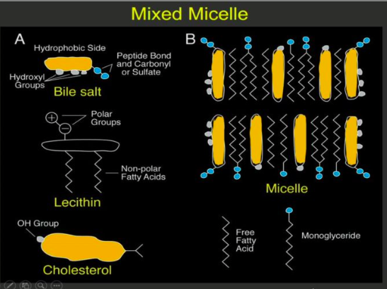 insoluble in the absence of bile salts (but in the presence of bile salts can form soluble mixed micelles)