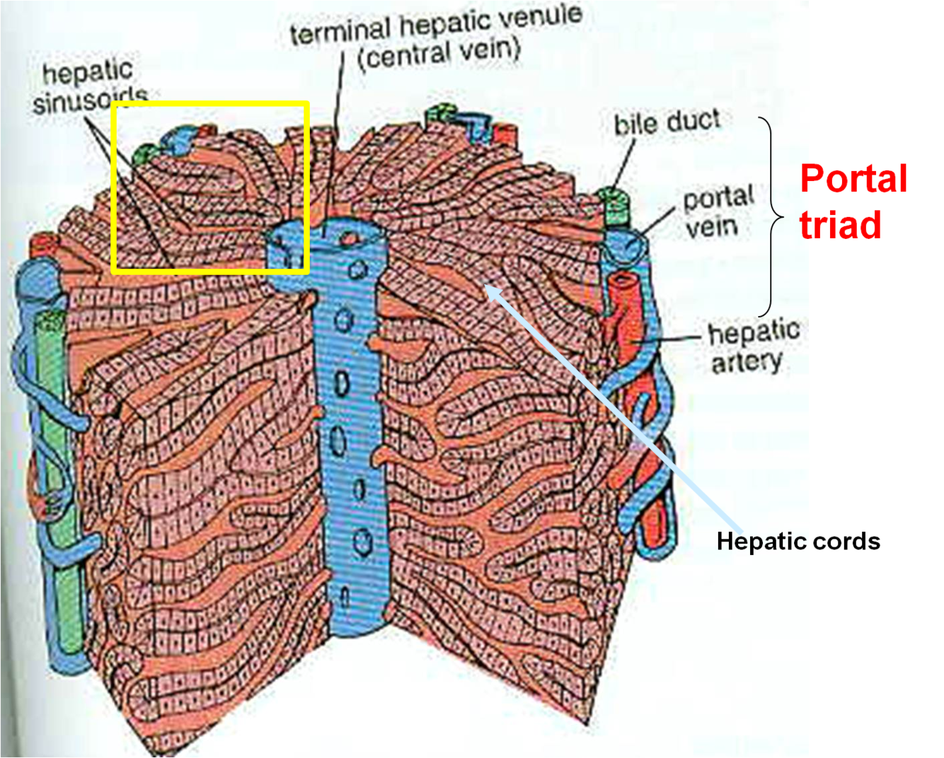 Short axis between 2 portal triads and long axis between 2 central veins. Looks like a diamond