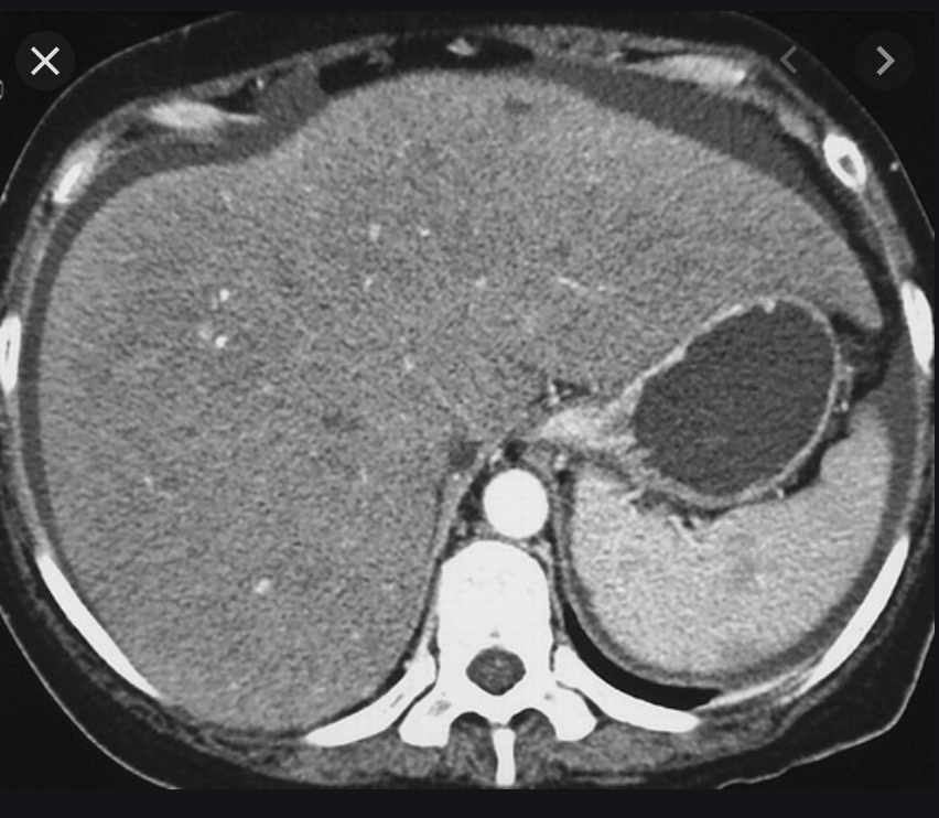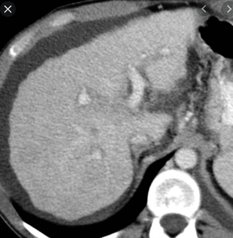 Ix: general: hyperattenuation + cirrhosis