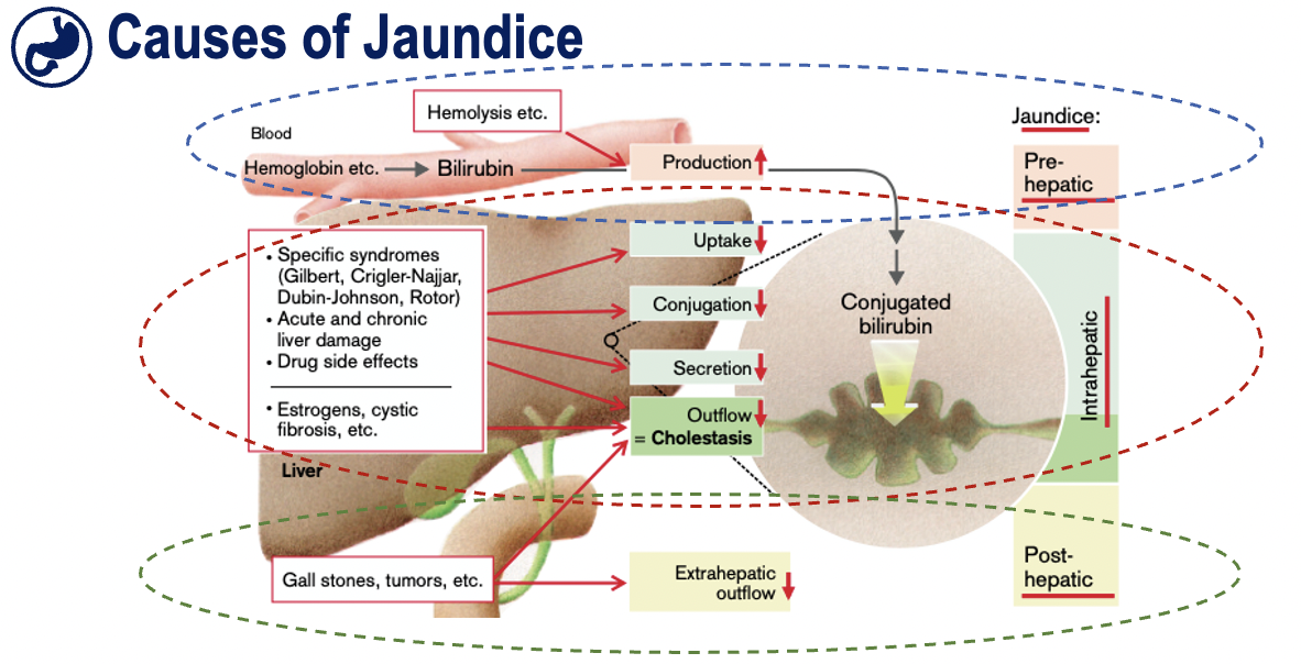 - Glycogen storage diseases, Wilson’s disease, Galactosaemia, Haemochromatosis, α1-antitrypsin deficiency