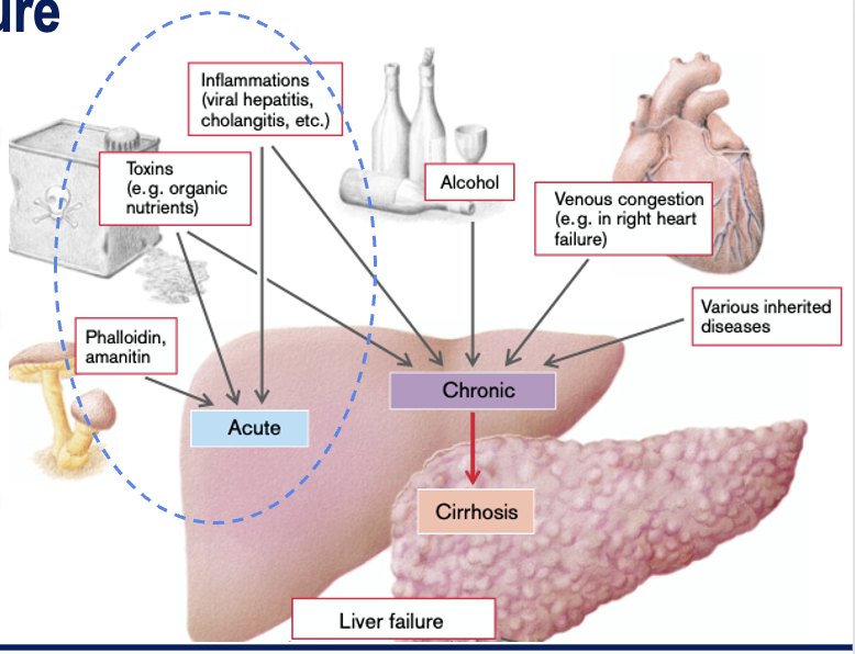 Fulminant hepatic failure = rapid development (< 8wks) of severe acute liver injury