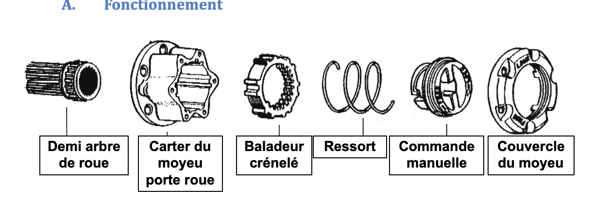 Le rôle des moyeux débrayables est de désolidariser les roues des ½ arbres de roue.