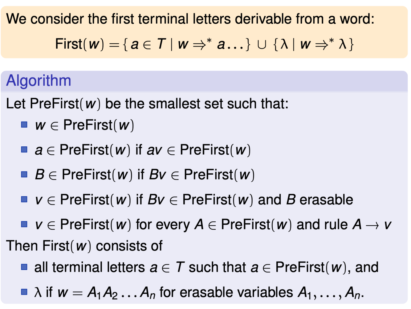 How to determine the set First(A)?