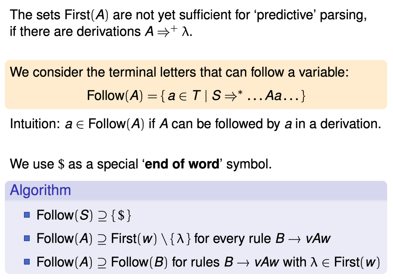 How to determine the set Follow(.)?