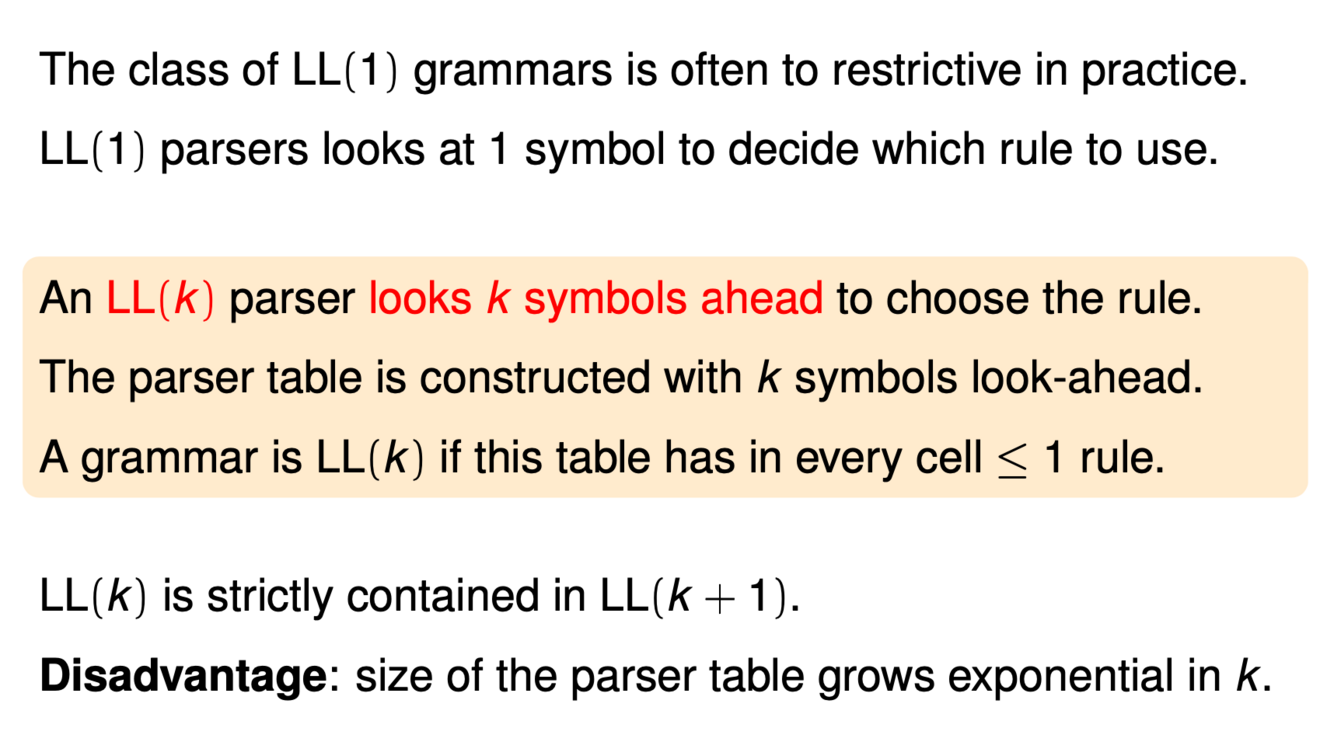 What is a LL(k) grammar?