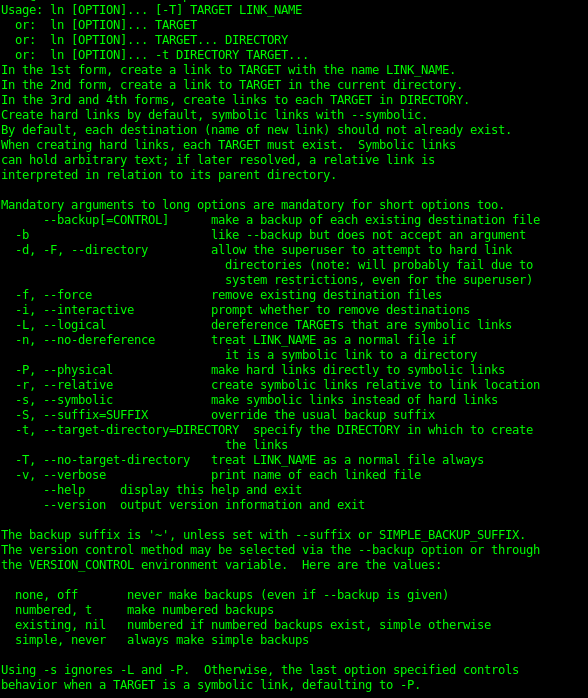 n the 1st form, create a link to TARGET with the name LINK_NAME. In the 2nd form, create a link to TARGET in the current directory. In the 3rd and 4th forms, create links to each TARGET in DIRECTORY. Create hard links by default, symbolic links with –symbolic.
