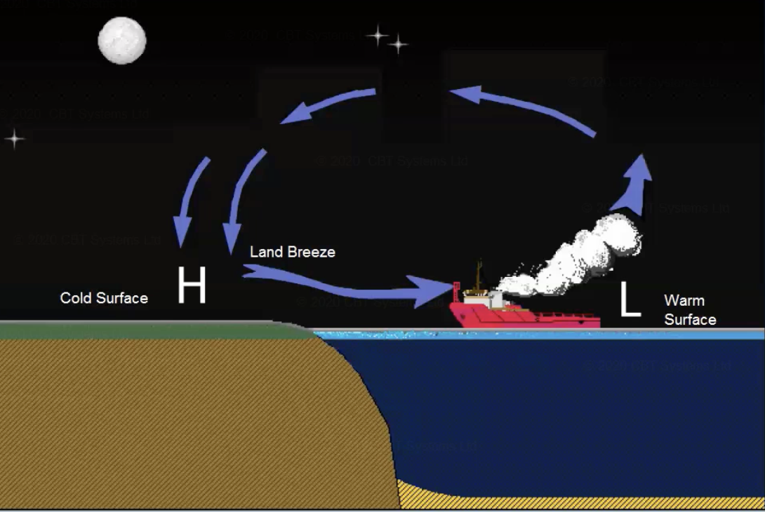 At night, land cools faster than sea.