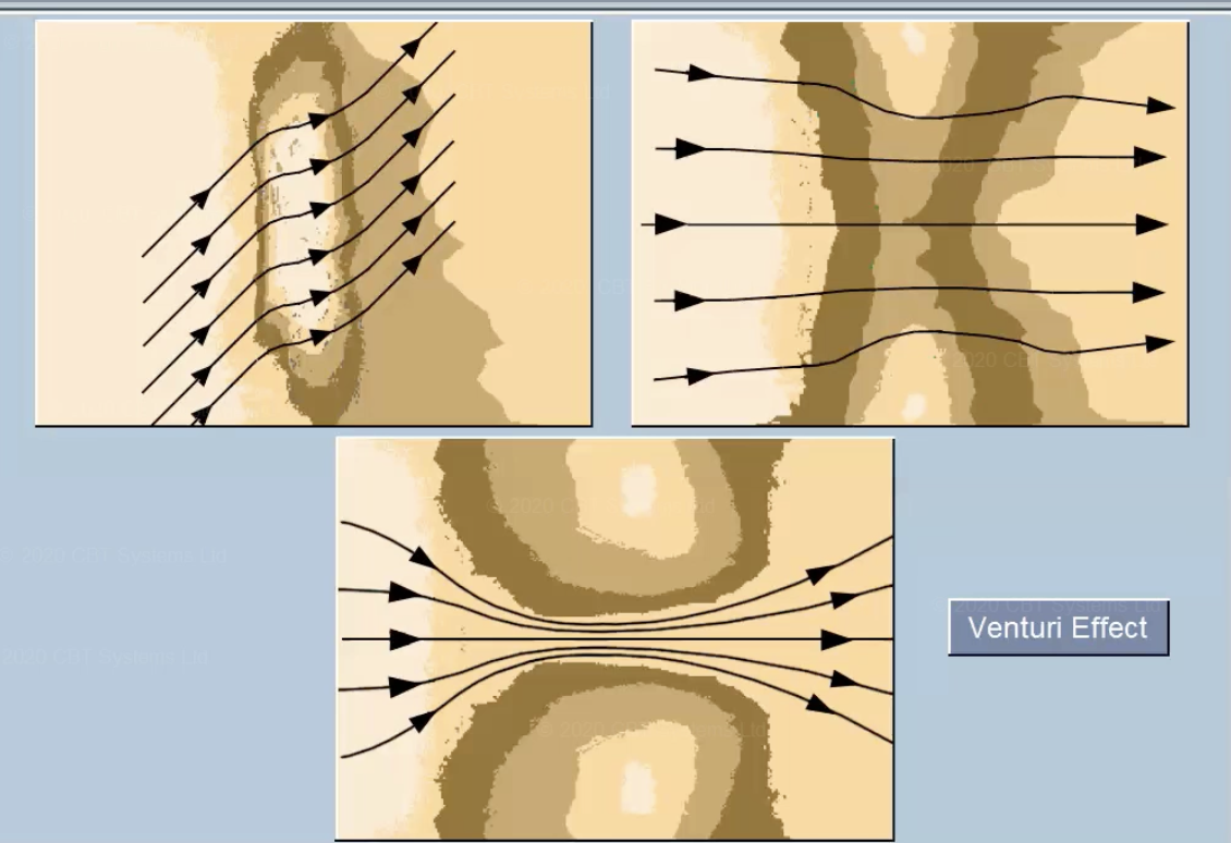 In areas where there are obstacles, the wind will compress and accelerate ( Ventrui effect )