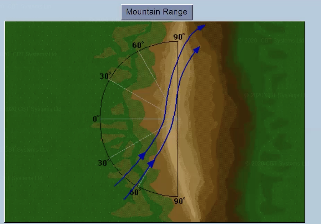 How is wind deflected by mountains?