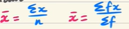 The sum of the x values divided by n or the sum of f(x) divided by the sum of f.