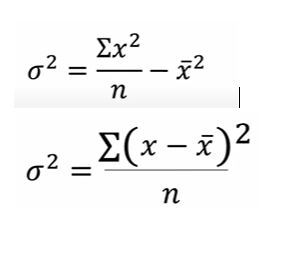 What are the 2 formulas for calculating variance? (Use first formula)