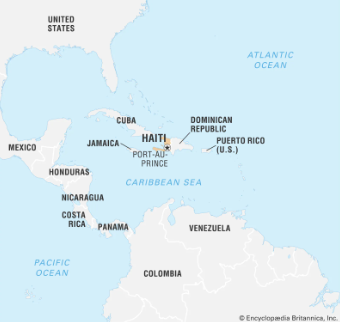 west of the dominican rebublic, southeast of cuba, east of jamaca, north of south america