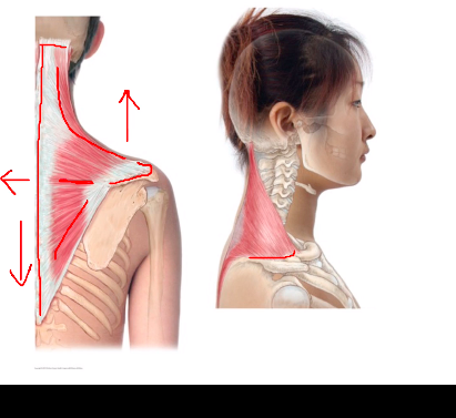 runs from occipital bone to bottom of thoracic vertebral. attaches to spine of scapula and clavicle
