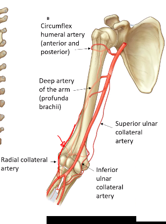 - runs medially in the arm and passes posterior the medial epidcondlye