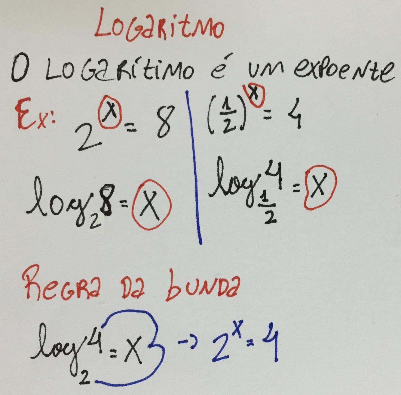 Qual a regra da bunda dos logaritimos?