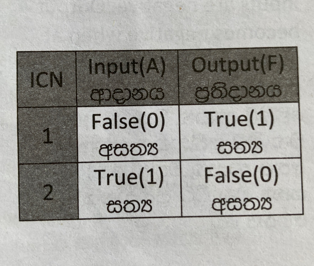 Draw NOT gate truth table