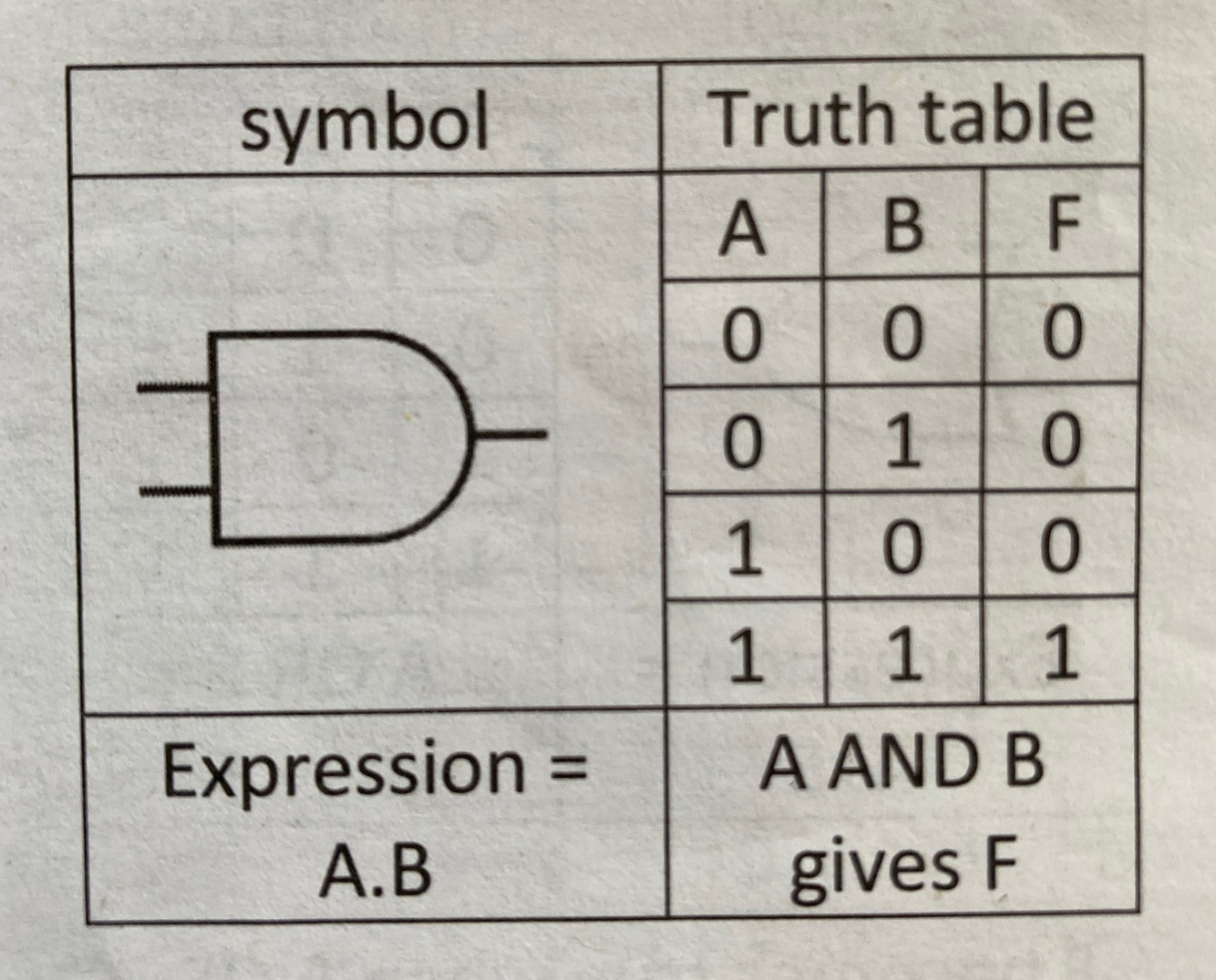 Draw AND gate truth table