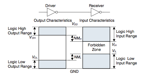 Draw a diagram showing the input/output characteristics for a driver/receiver circuit. (1)