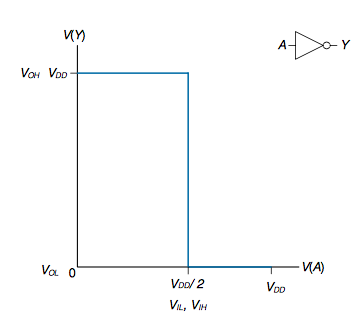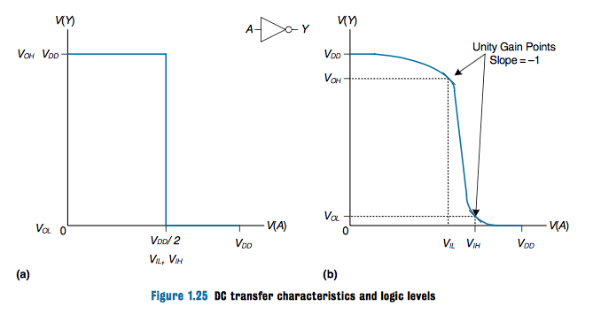 What might the realistic transfer characteristics look like for an inverter? (1)
