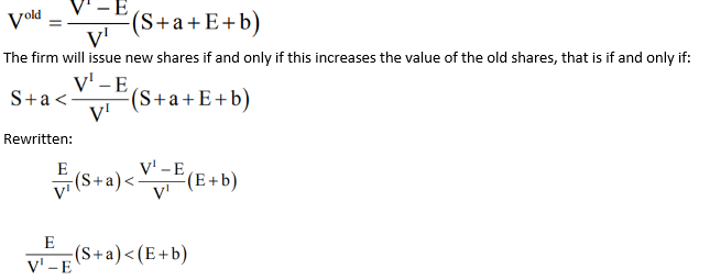 <p>If v-ø>q, then p=v-ø, and existing shareholders make a profit equal to v-ø-q>0. </p>