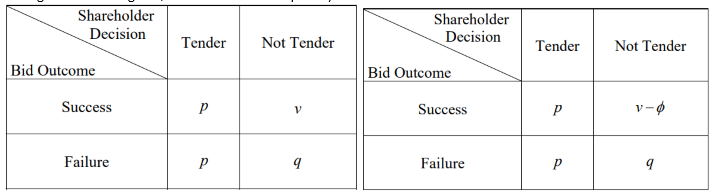 See first image for choice faing shareholders. Investors are rational, in the sense that for a given p, they correctly anticipate the outcome of the bid (i.e. we are looking at PBE). So if the tender offer is successful, then this is anbticipated in eq, hence the case must be that p>=v, or no one would tender.
