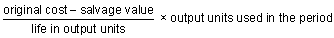 What is the calculation for units of production depreciation?