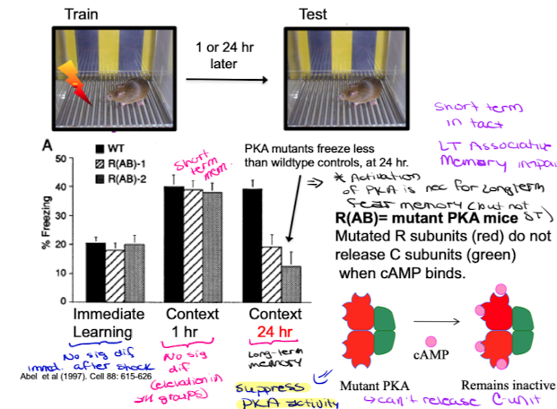 PKA activation is required for normal LT memory in area CO-1 Region of the hippocampus (critical for LTM)