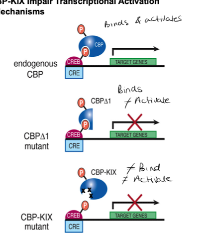 Know how two distinct mutations of CBP affect transcription and long-term memory