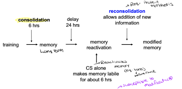 Consolidation and reconsolidation each lasts about 6 hours - in which susceptible to modifications via protein synthesis